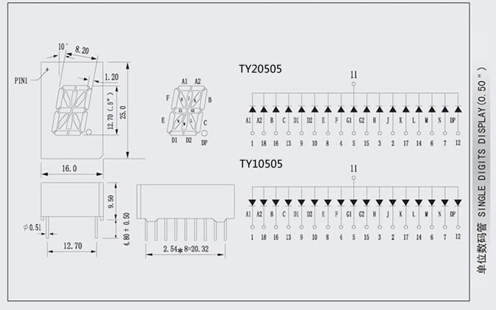 ⑨極性:共同陽極/共同陰極(共陽/共陰)。